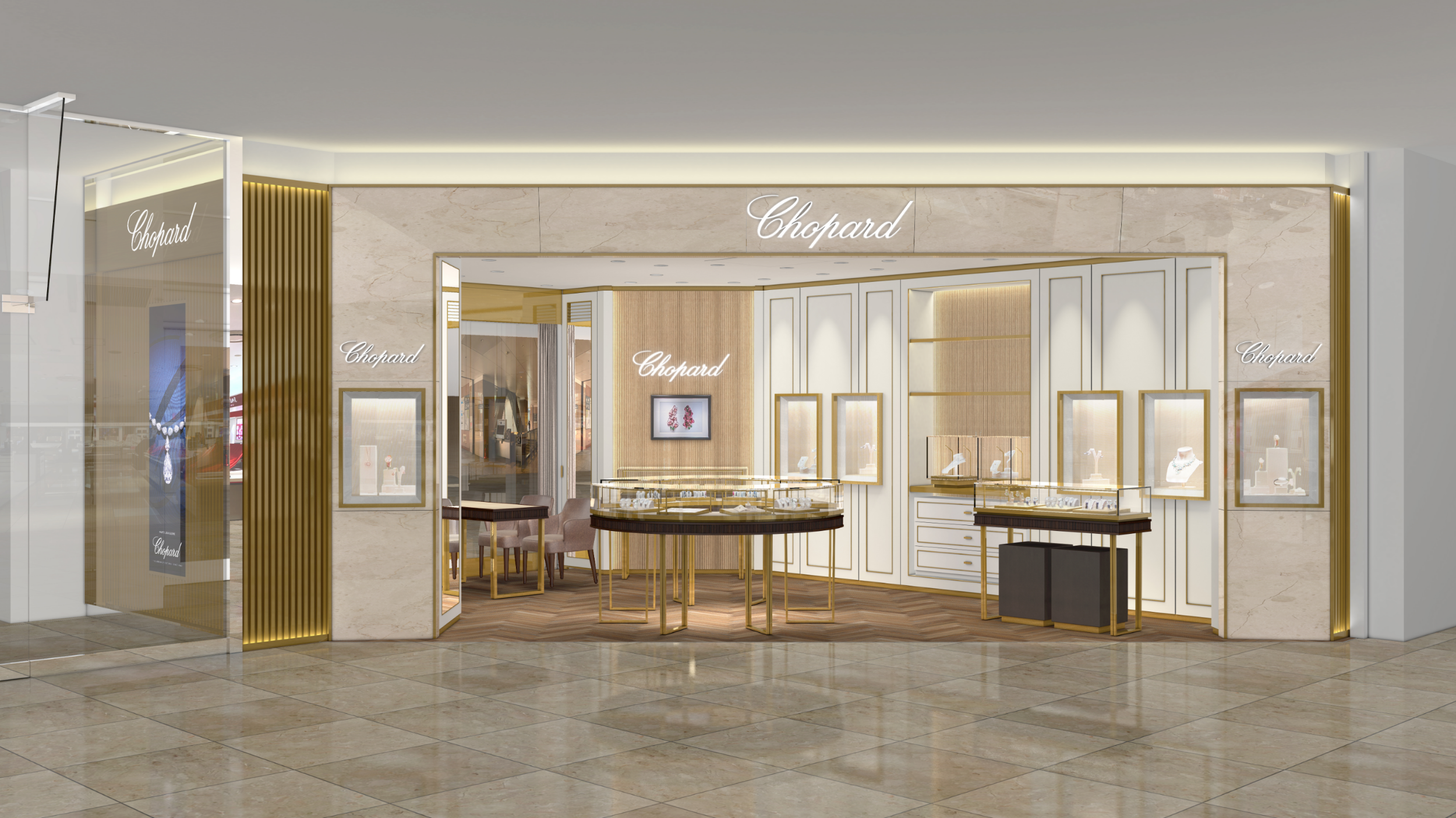 僕はあまりショパールにゴールドのイメージがありませんが、近年オープンしているブティックは全てこの配色のようです。